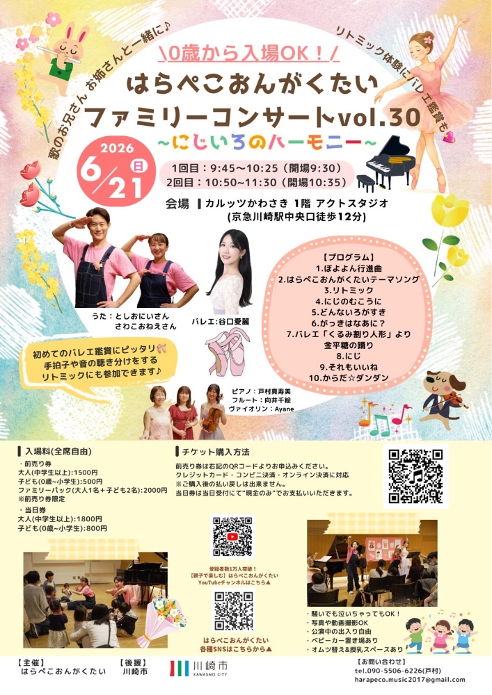 「はらぺこおんがくたいファミリーコンサートvol.30 〜にじいろのハーモニー〜」